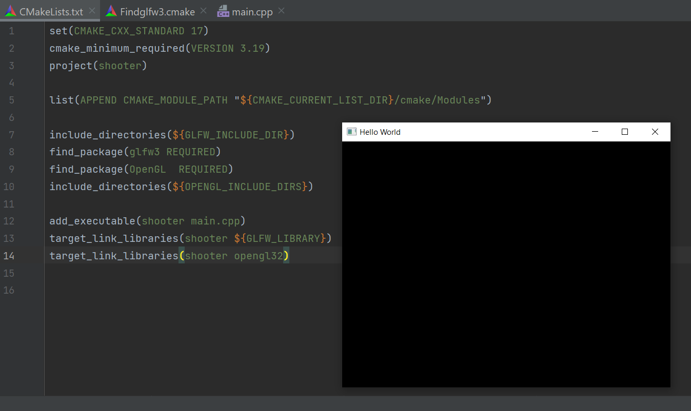 мне нужно, что оно собиралось вот так, грубо говоря: g++.exe main.cpp -lglfw3 -lopengl32 -lgdi32