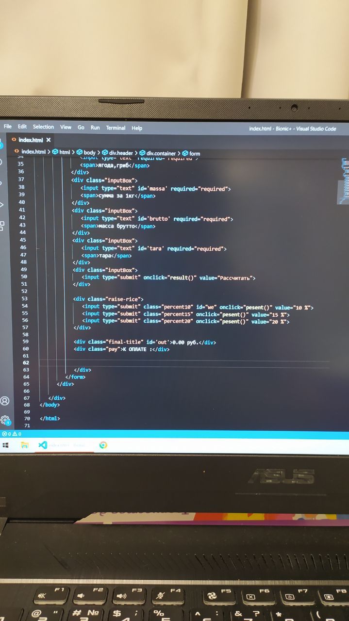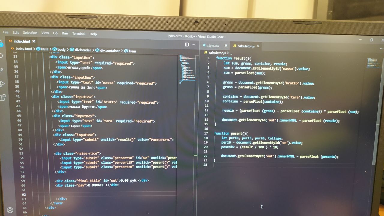 Программа для расчета выручки, смысл что одна функция выполняет сложения, масса - тара * на стоимость товара , хочу добавить вторую клавишу +15% чтобы при нажатие к сумме от выручки +15 % было ,как это осуществить (пробую onclick но ничего не выходит со второй клавишей) заранее спасибо