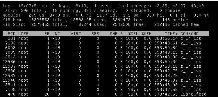 в top куча процесссов уходит под 100% и иногда из такого состояния пару дней не выходит помогает ребут только