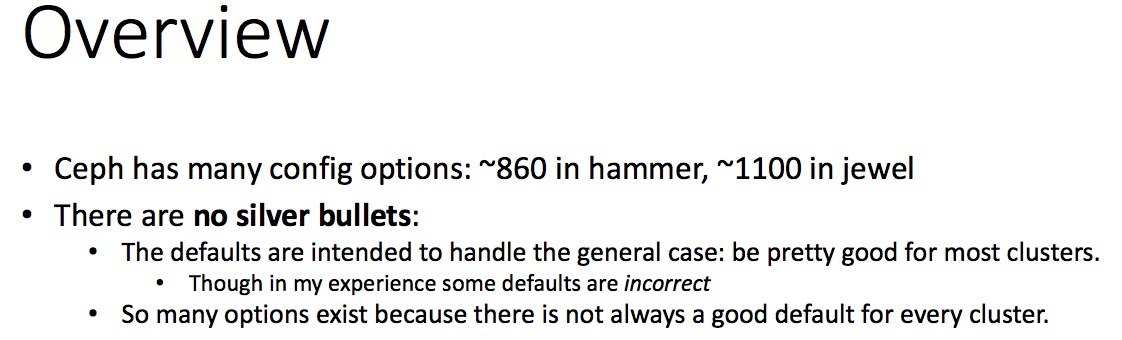 Проблема в том что без их настройки цеф будет плохо работать. Вввиду того что это единственное реплицируемое опенсорс хранилище его пытаются применить где только можно. Да, есть гластер но он ещё хуже.