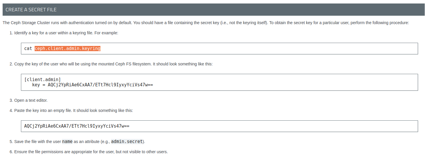 sudo mount -t ceph 10.80.20.99:6789:/ /qwe -o name=admin,secret=XXXXXXXXXXXXX