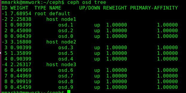 mmarkk@mmwork:~$ for i in seq 0 9; do ceph tell osd.$i bench 2>&1 | awk '/bytes_per_sec/ { print $2/(1024*1024) }'; done