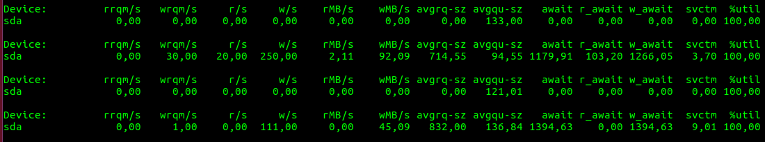 на этом конкретном ноде был адски медленный ссд — при этой команде, он (как и HDD) в сто процентов