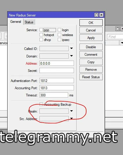 в настройках радиуса кажи соурс 192,168,1,1