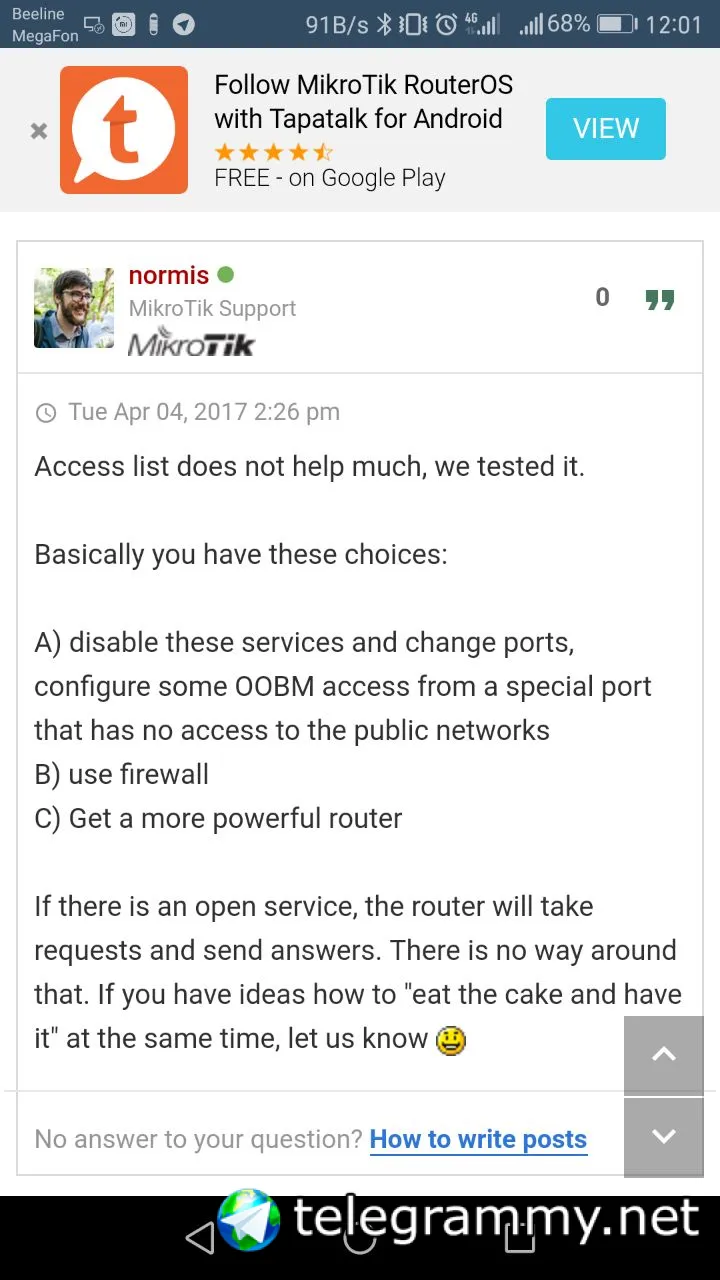 Масло масленное, при чем тут Микротик не понял ) так и на 80 прот дос атаку можно провести
