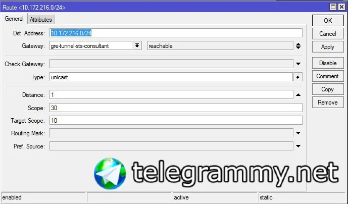вот настройки роуте, дст.адресс - это подсеть, которую на второй стороне выделили под мою