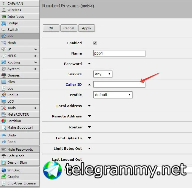 caller-id (string; Default: ) For PPTP and L2TP it is the IP address a client must connect from.