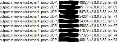 Трафик идёт на DNS гугла. (8.8.8.8:53)