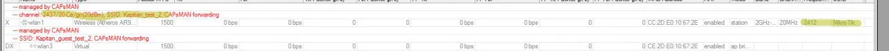 Коллеги, подскажите. В Капсмане настроил wAP ac на интерфейсе 2,4. На скриншоте точки частота два разная показана (выделена желтым), и SSID так же. Правильная первая частота и первый SSID. Вопрос - что означает вторая частота и SSID?