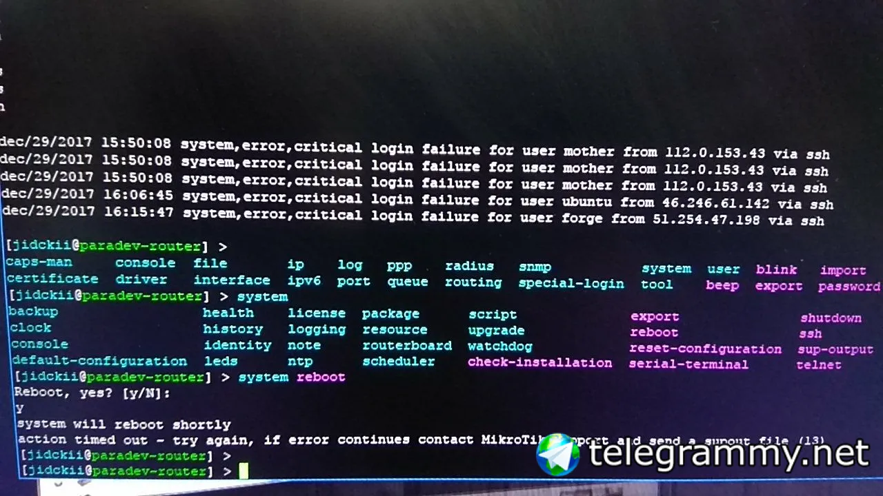 action timed out - try again, if error continues contact MikroTik support and send a supout file (13)