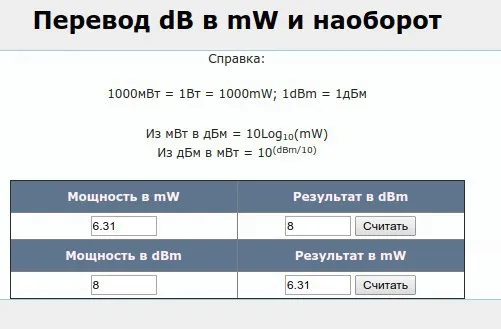 8dbm сколько mw?