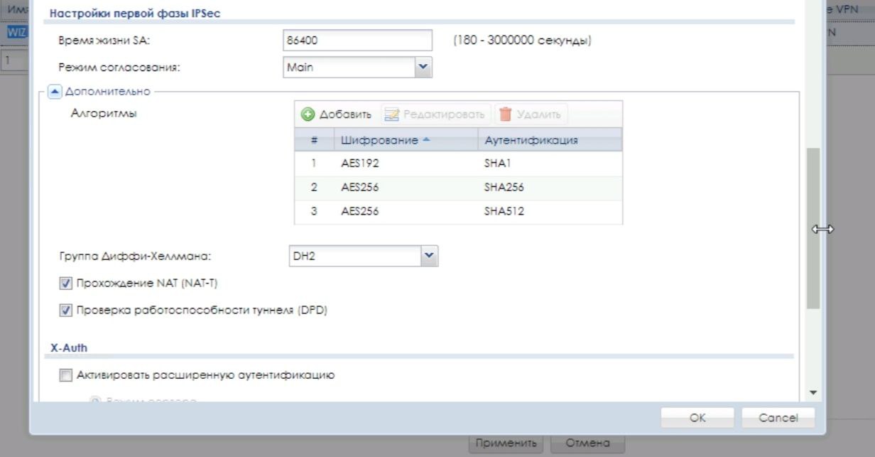Подключился вот с таким конфигом первая фаза 3des sha1, вторая aes192 sha1