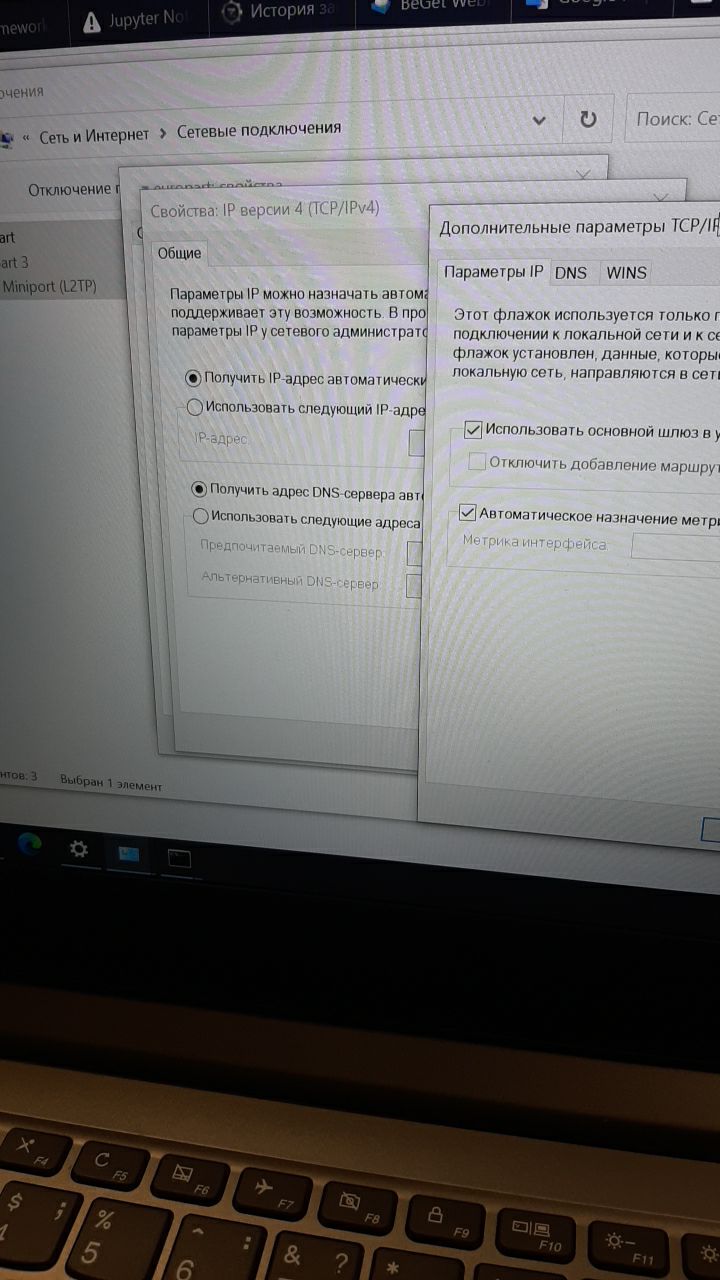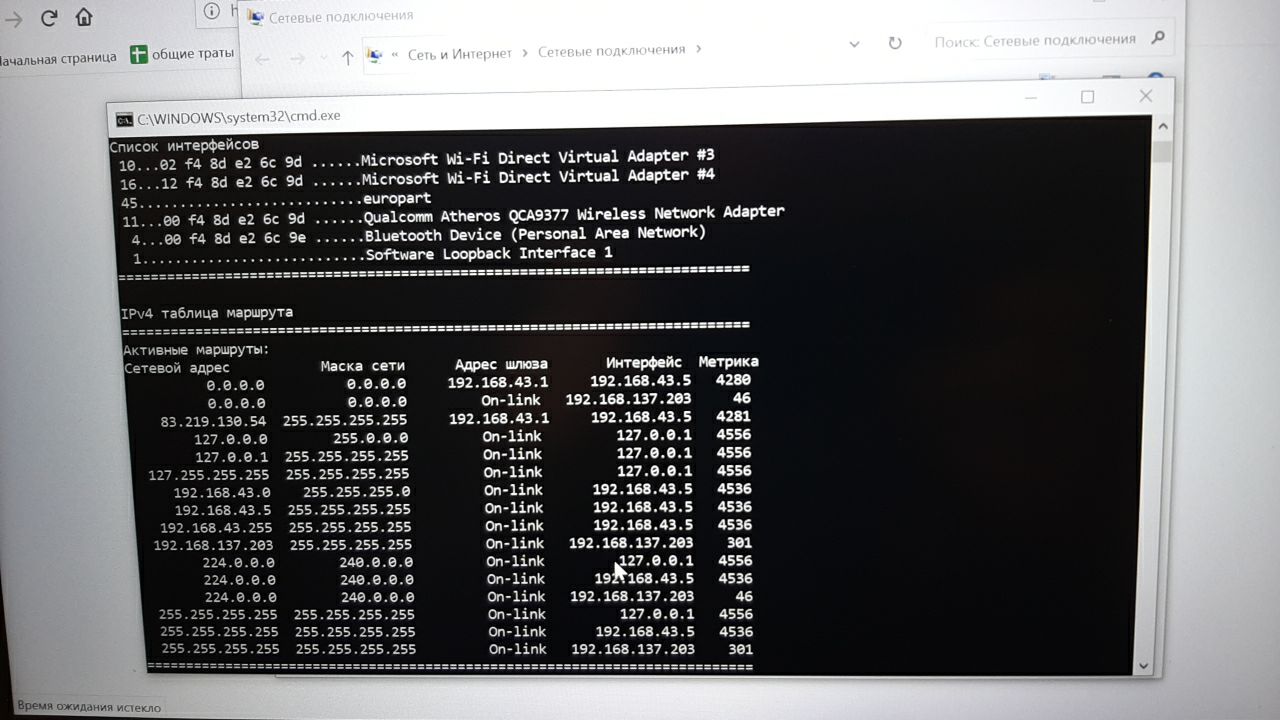 Включите галочку "Использовать основной шлюз" и покажите вывод команды: