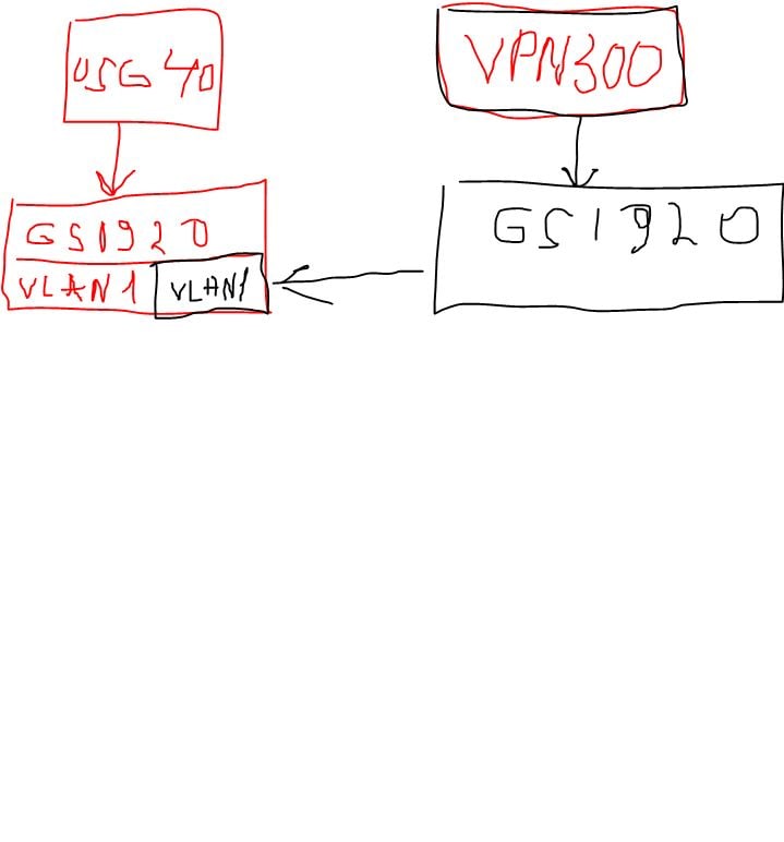 Да - заморочено думаем над этим - решение пока что доставить свич для влан 1 - но вопрос или можно разделить свич GS1920 грубо говоря на пополам что бы запихнуть два одинаковых за номером влана с разных шлюзов - кот-то "розрезал" порты на свиче? Что бы в одном свиче от USG 40 на портах 1-16 был влан1 с сороковки и на портах 17-25 влан 1 но с VPN 300