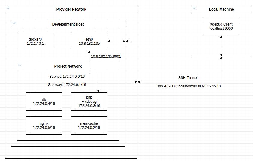дебаггер будет пытаться установить соединения к 172.17.0.1:9001