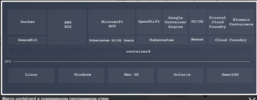 можно будет containerd и runV подменять на другие oci-совместимые реализации