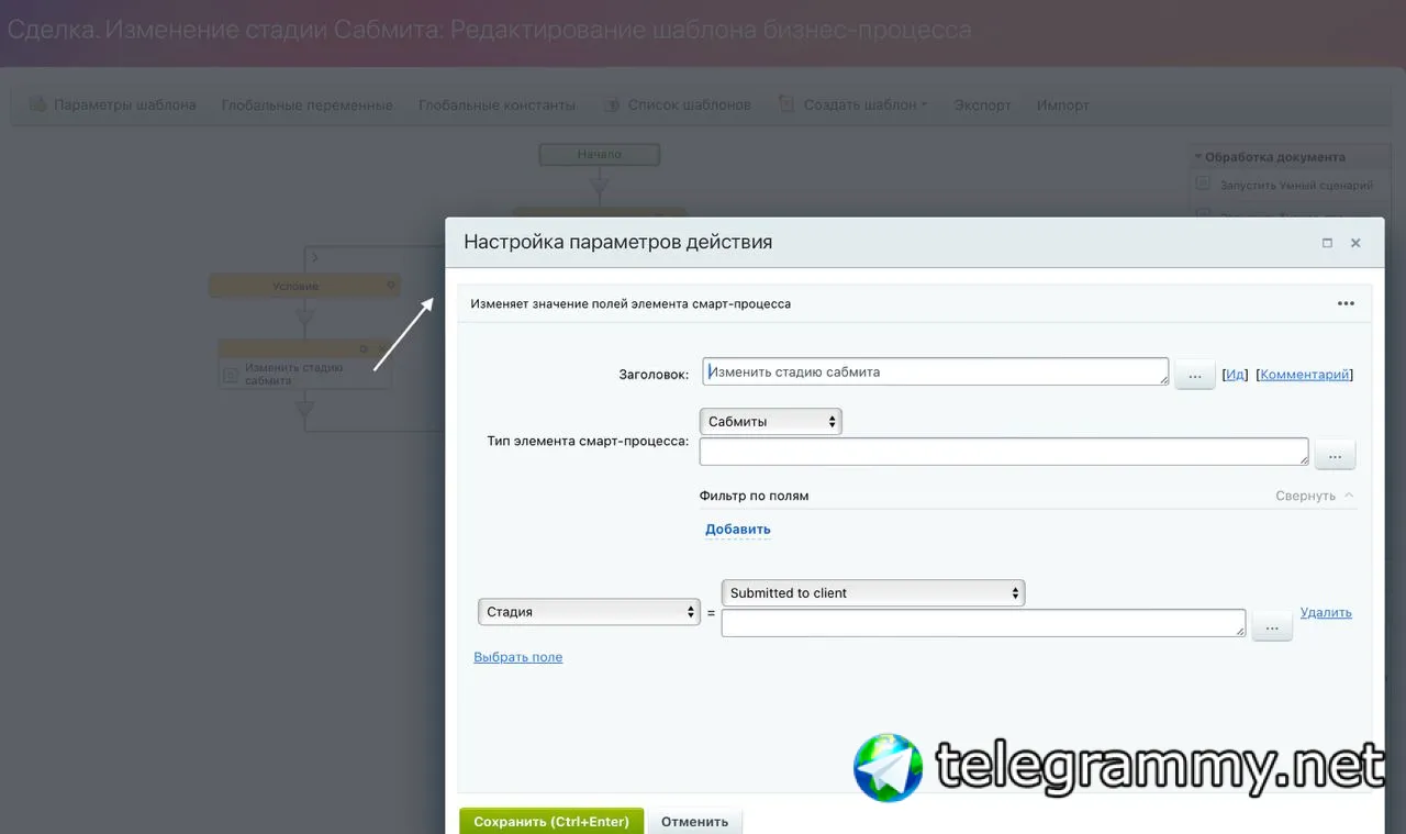 Подскажите, ЧТО неправильно в БП? Нужно менять стадию смарт процесса при смене стадии сделки