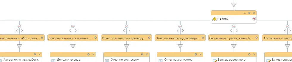 Или же сделать последовательно несколько конструкций Условие. Каждое из условий - это то же, что и в варианте выше. Наверное, так проще всего. БП пойдет и последовательно проверит, нужно ли создавать каждый из документов.