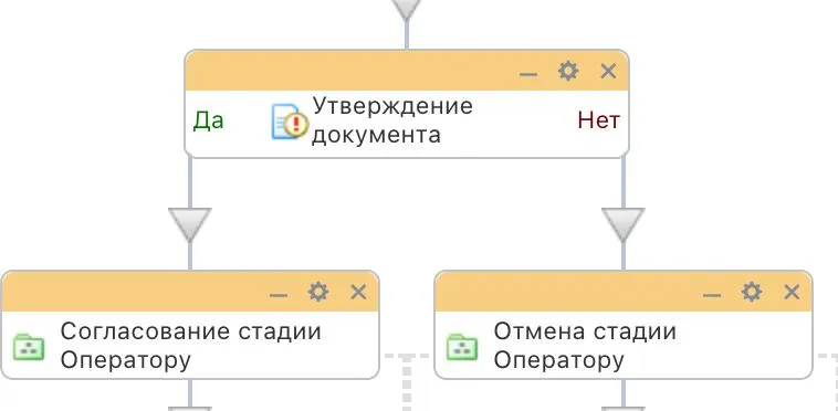 Облачный битрикс. Использую активити "Утверждение документа" в шаблонах сделки. Да или Нет реализует логику уведомлений и перехода между стадиями.