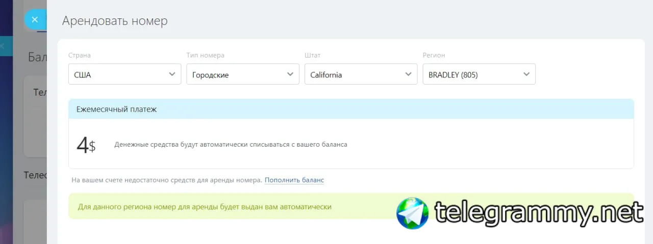 "Для данного региона номер для аренды будет выдан вам автоматически"