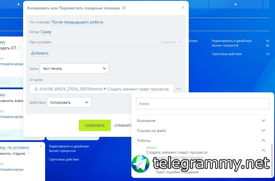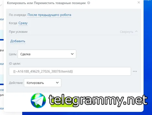 Робот должен быть для сделки сделан, цель это смарт, ид смарта запишите в поле после создания