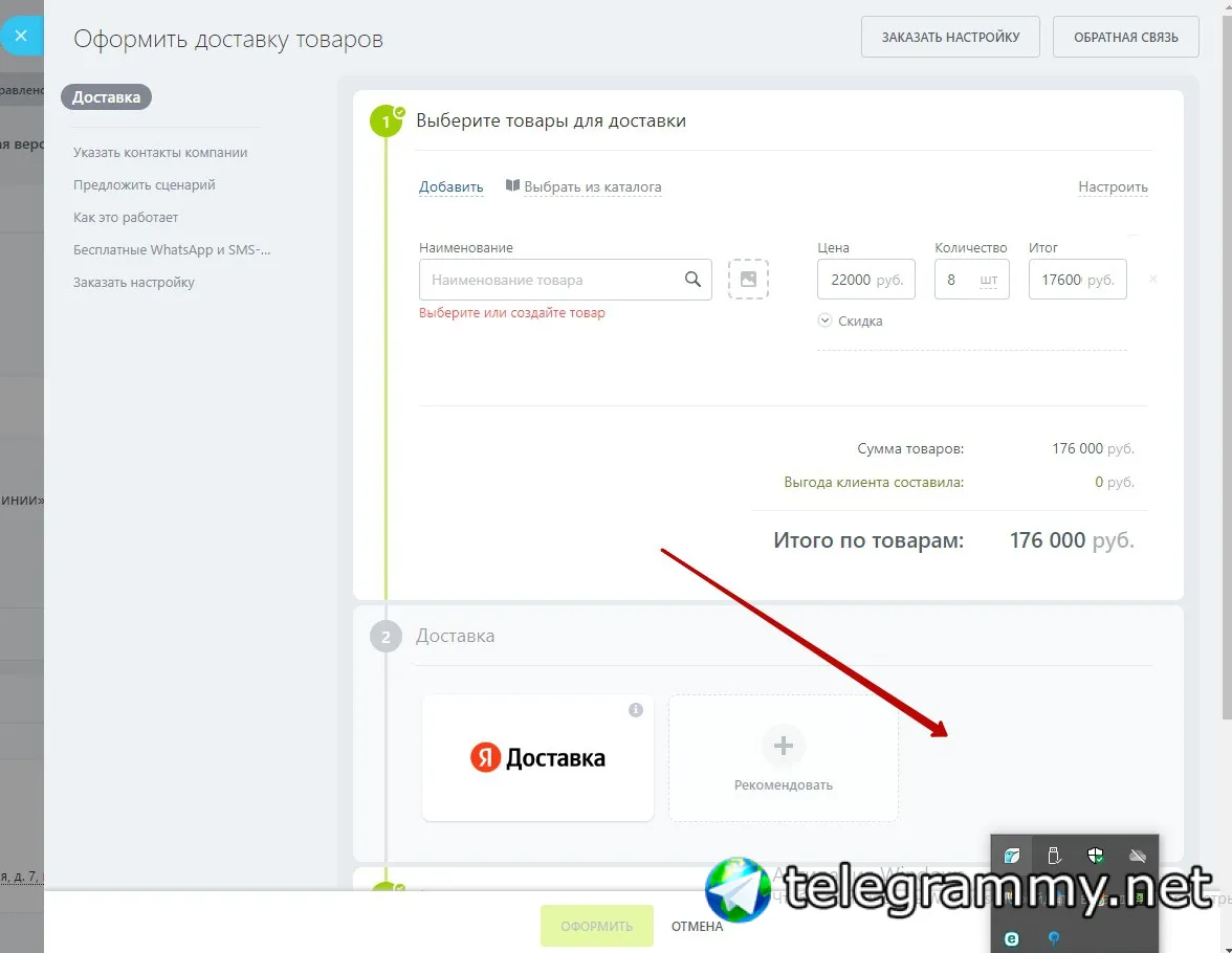 То есть в сделке сгенерированная ссылка на страницу с информацией о заказе