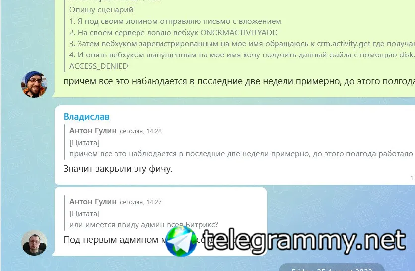 я уже ничему не удивляюсь - когда у меня интеграция работала полгода, потом приложение "само по себе" перестало получать доступ к файлу из "дела" месяц с техподдержкой - "вы знаете, наверное это выпилили" написал мне сотрудник какой-то там 80-й линии. Ну ок, забыли