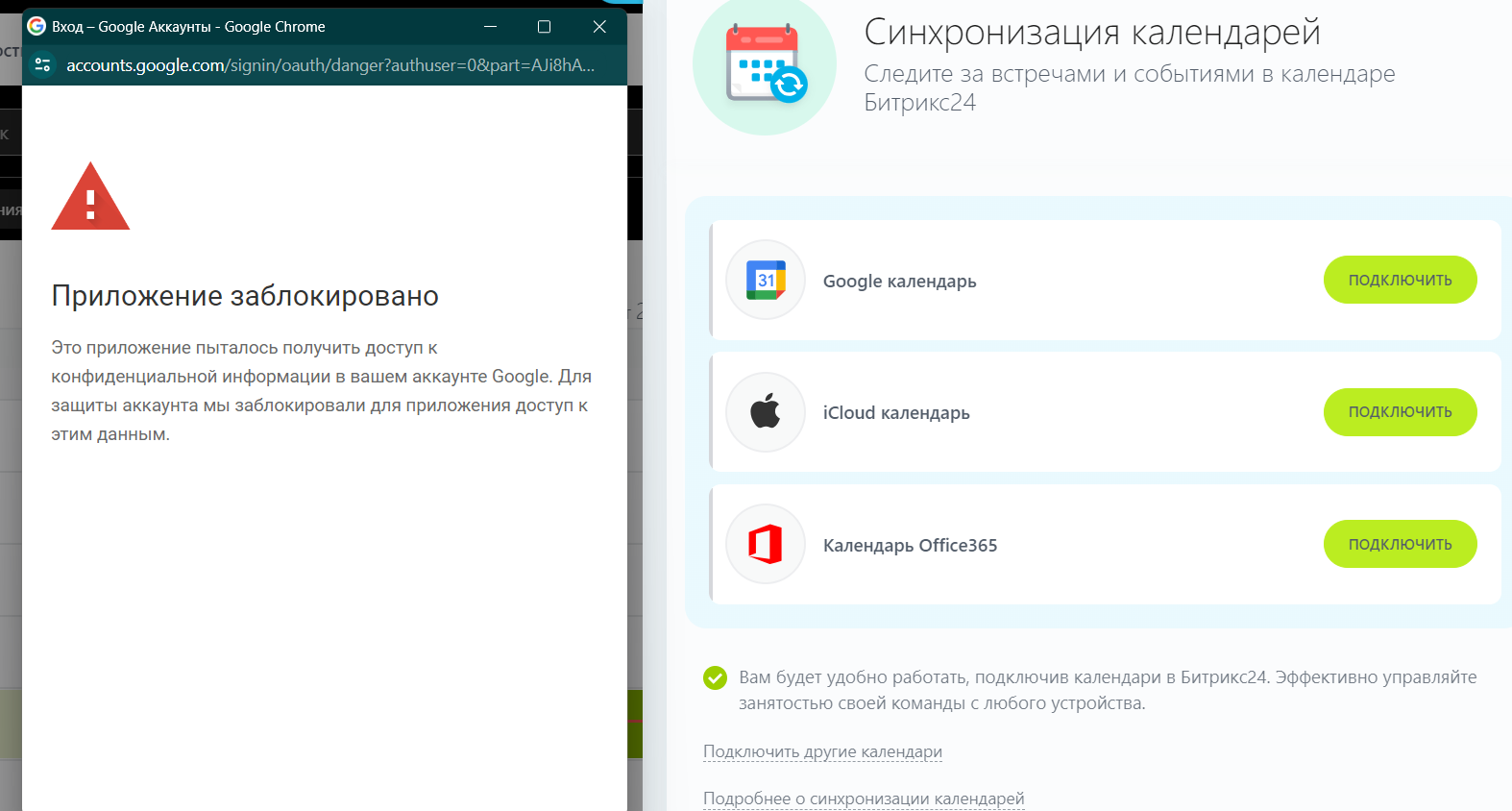 Всем привет! Отвалилась синхронизация с Гугл календарём. При попытке восстановления выдаёт текст что приложение заблокировано. Через акк в Гугле посмотрел, там отмечено что связь есть и она работает. Это мой личный баг или массовая история?
