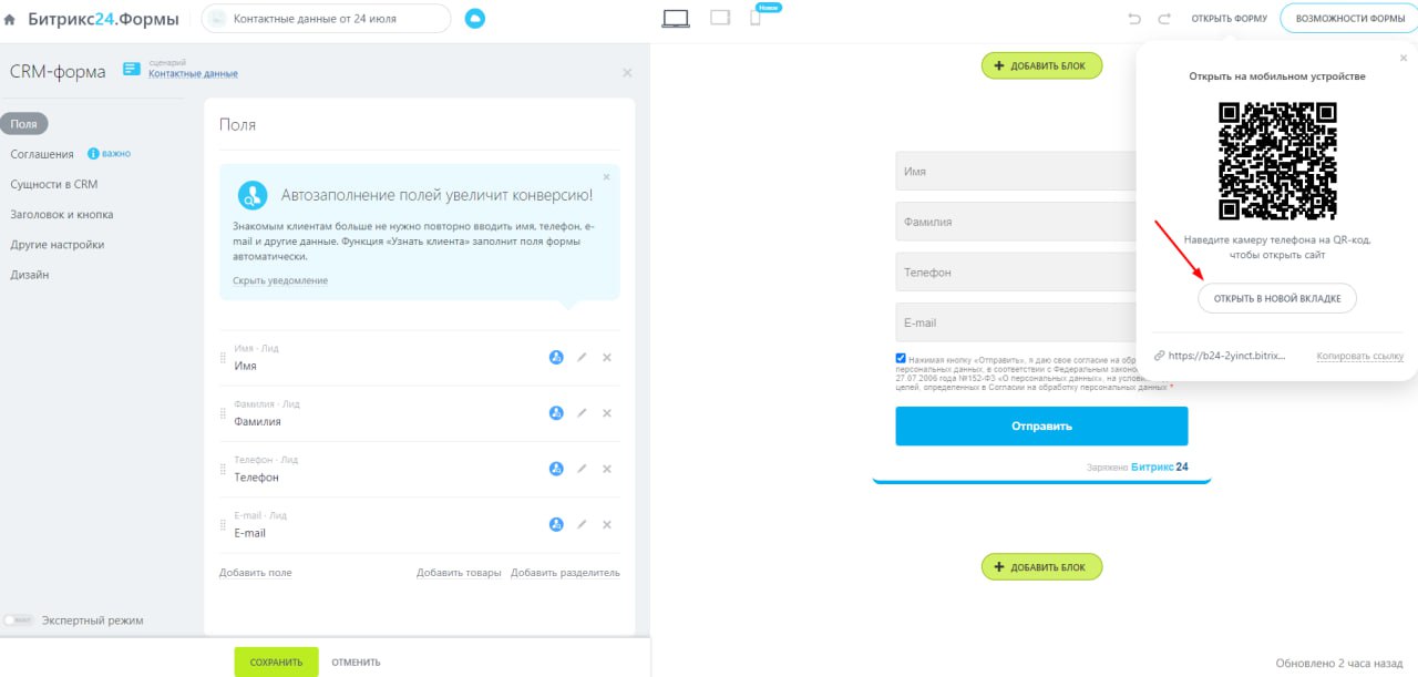 Коллеги,подскажите пожалуйста по crm формам.Открываю форму в новой вкладке.А формы в итоге нет.Это происходит в развернутой коробке битрикса(корпоративный портал).Как можно решить проблему?
