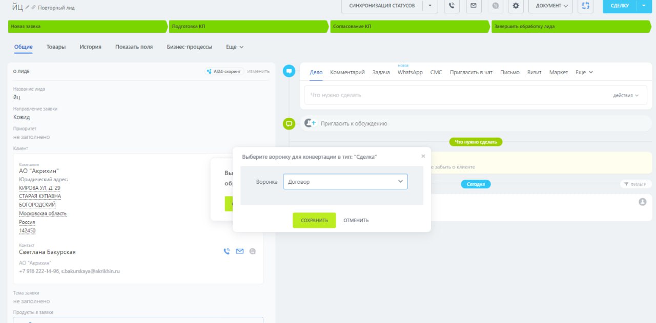 Настраиваю права, с запретом на экспорт данных с контактов и компаний, и разрешаю экспорт данных по сделкам, в определенной воронке.