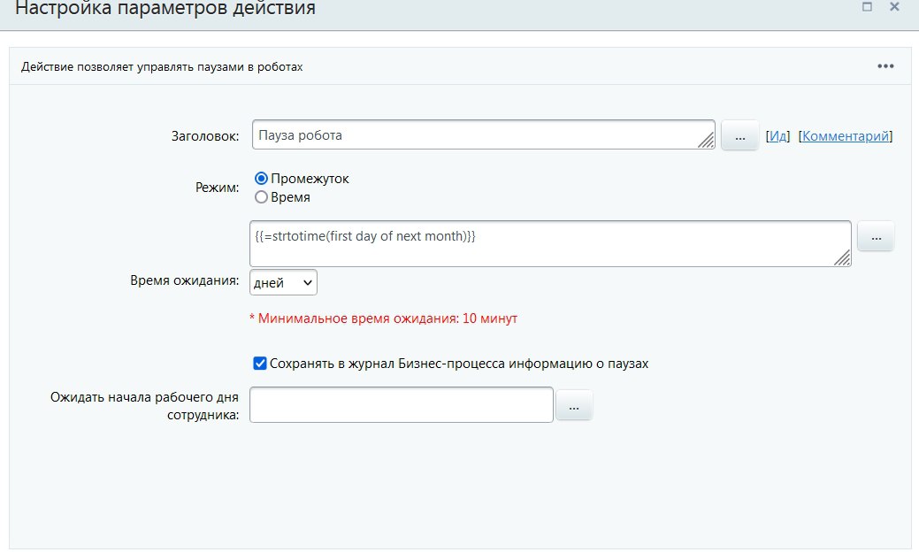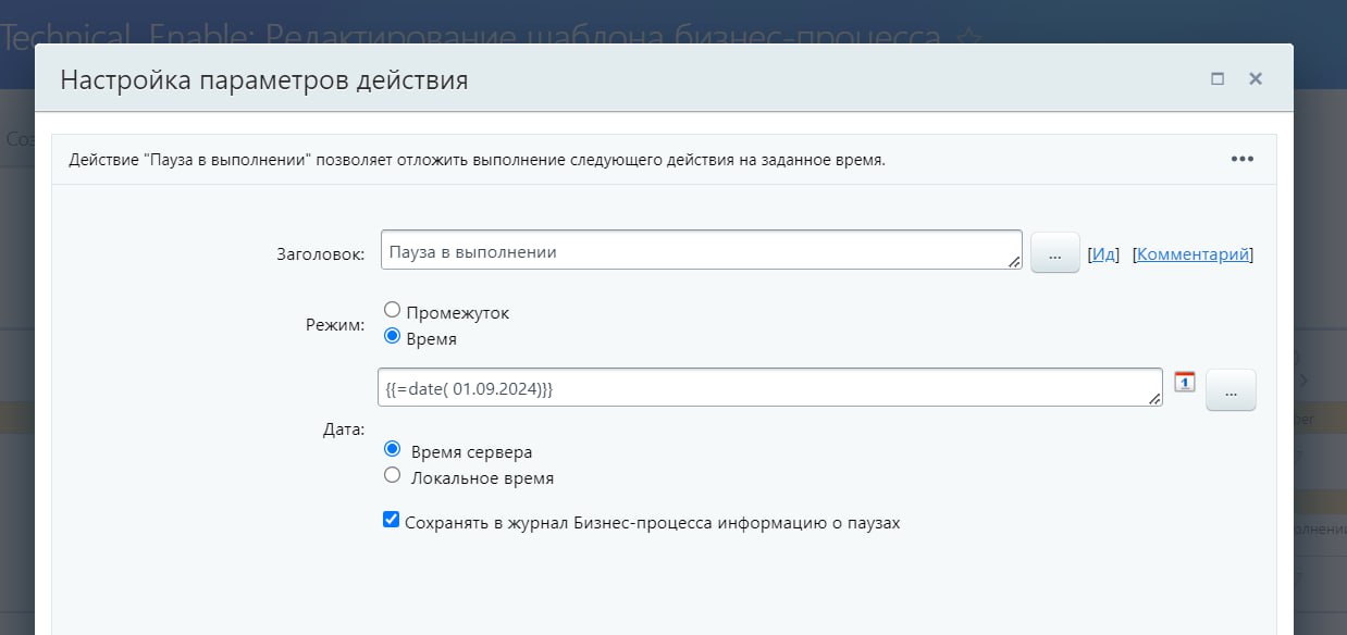 Добрый вечер всем, как поставить паузу в БП до 01.09.2024, вроде не нашла подходящую функцию(