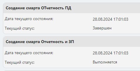 если в карточке компания меняется поле на договор подписан, то должны запуститься 2 бп на формирование задач для сотрудников