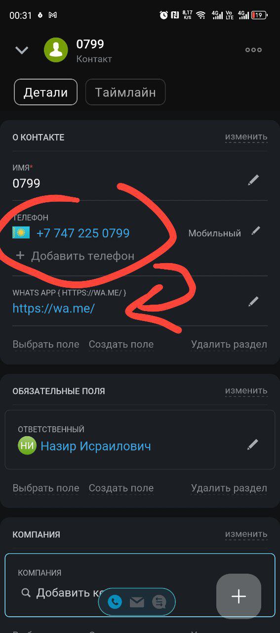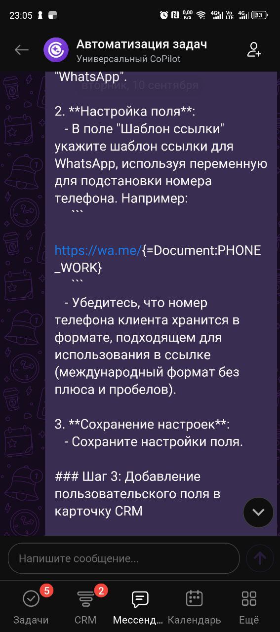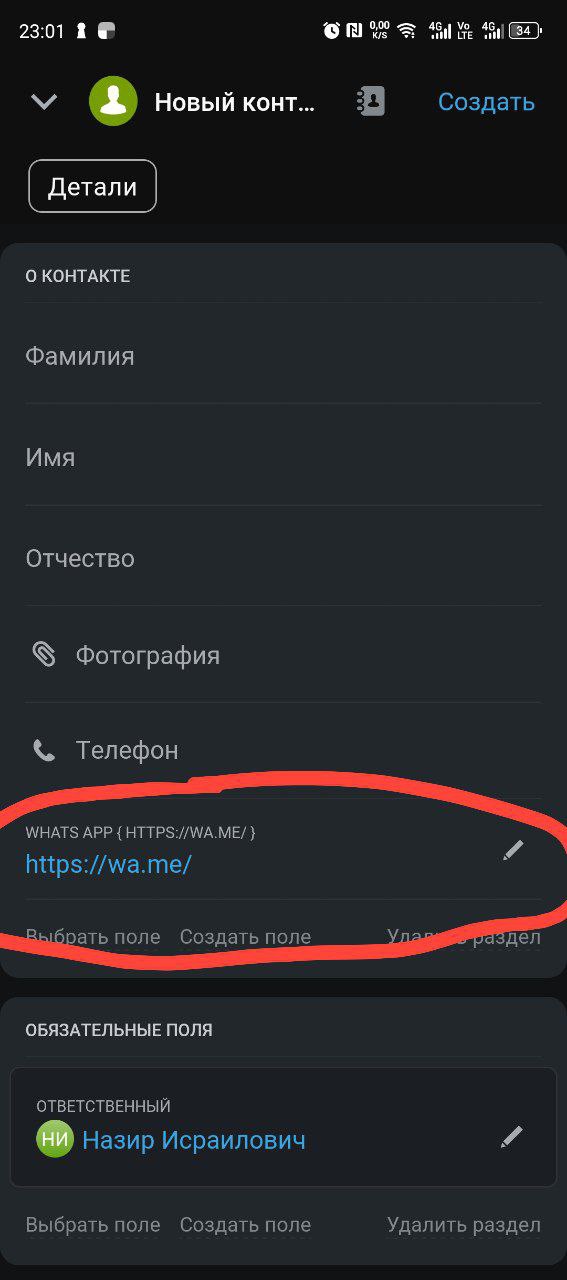 Есть ли такой код , который автоматический в созданое поле "ссылка" будет подставлять номер телефона контакта ?