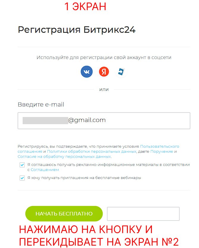 Добрый вечер. Не получается ЗАРЕГИСТРИРОВАТЬ новый Bitrix24. Возможна сейчас регистрация нового bitrix24 на GMAIL почту?