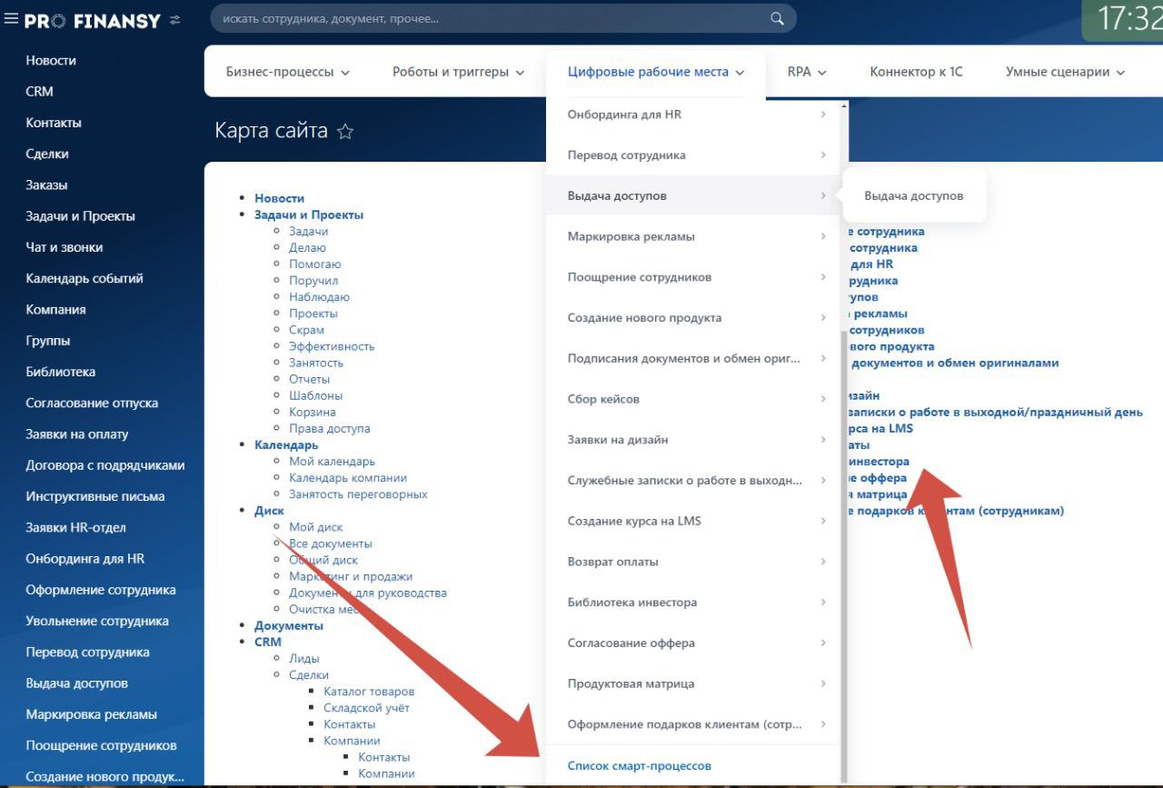 Мне нужно добраться до списка номенклатуры в смарт-процессе Склад.