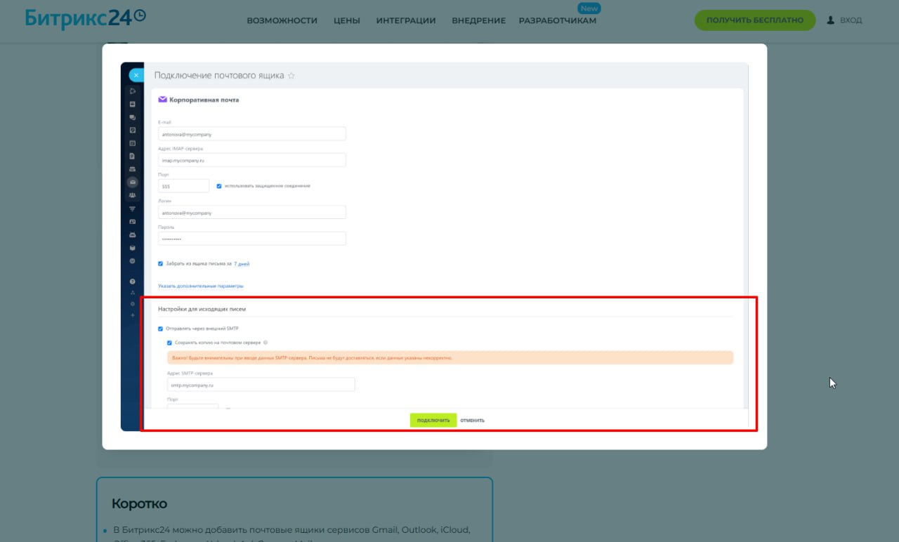 В документации описано что должны быть настройки для SMTP у ящика, как понял, но таких настроек просто нет.