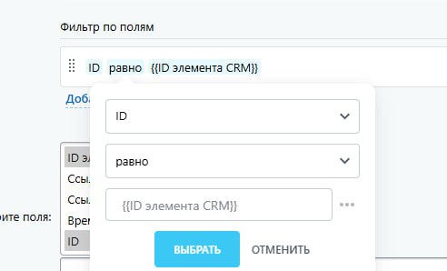 id элемента CRM = Поле в смарте - Тип "Привязка к элементам CRM"