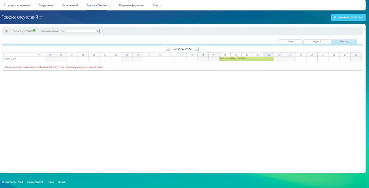 Добрый день! Подскажите, пожалуйста, в график отпусков, возможно ли отразить все даты отпусков всех сотрудников или сотрудников заданного отдела за год, а не только за определенный месяц?
