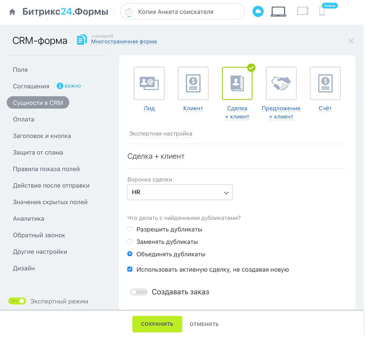 В сделке есть ссылка на crm-форму. (анкета соискателя)