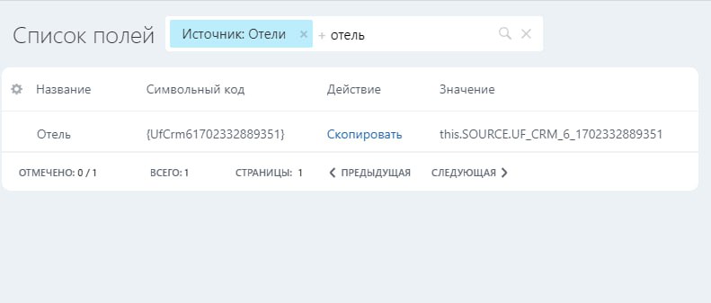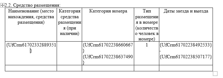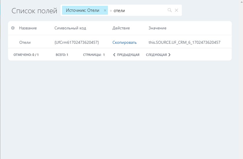 всем привет, хотели загрузить документ в битрикс. что бы отправлять клиентам на подписание. Символьный код почти многих параметров достали, типа даты, суммы ФИО и т.д. Вот есть в смарт процессах отели. и в сделке есть возможность добавить отели, вроде название символьного кода верная, а в доки не подтягивается. Может кто помочь?