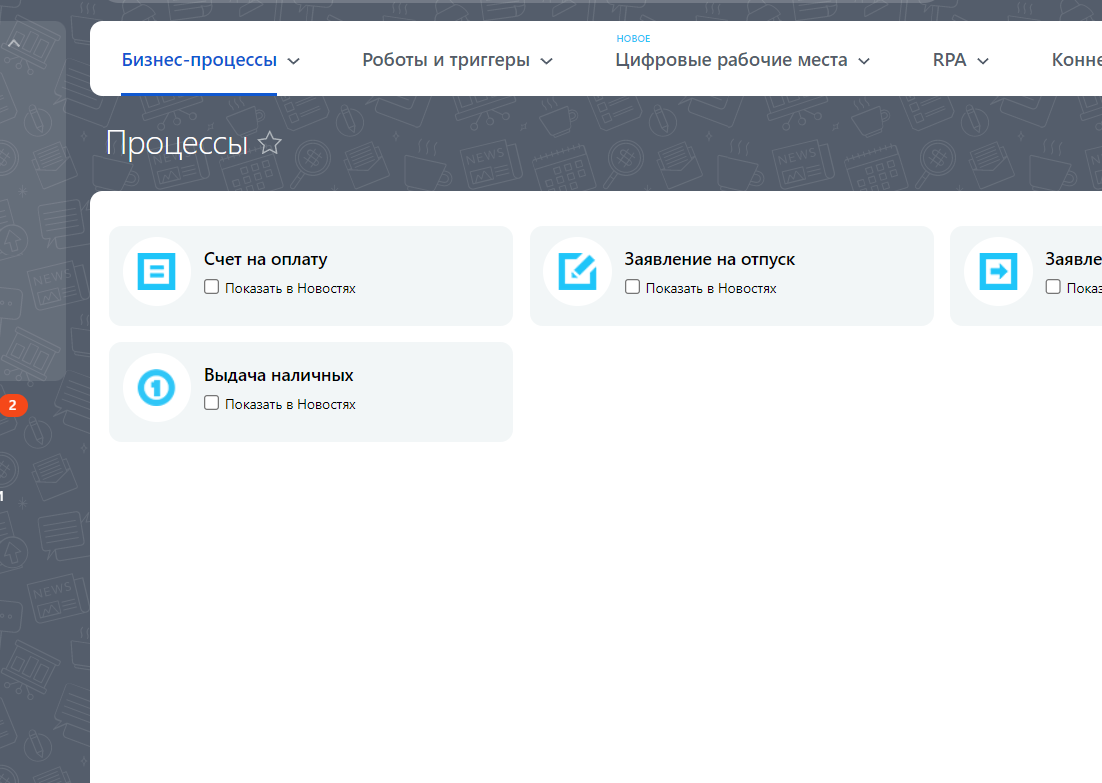 Подскажите плиз. Бизнес процесс в ленте новостей.