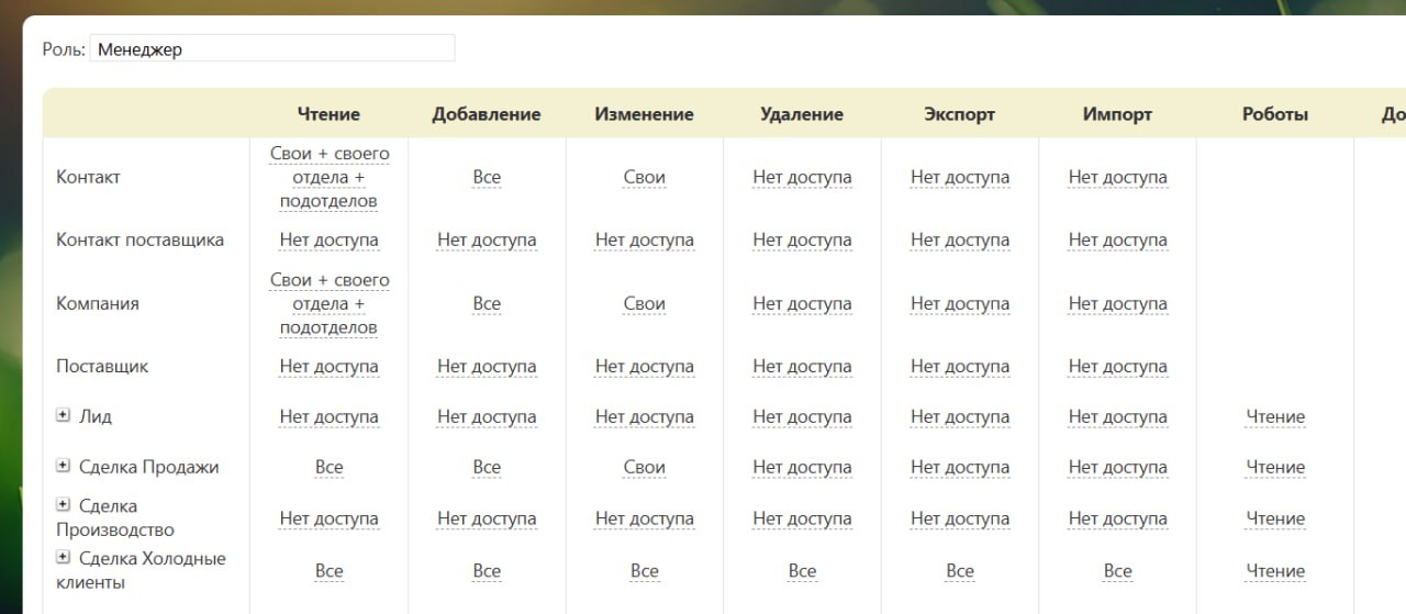 Коллеги, привет. Подскажите, добавила нового менеджера в битрикс, а он не видит одну из воронок. Права менеджера, у прежних сотрудников те же права, но видимость воронки у них есть. Что нужно изменить в настройках?