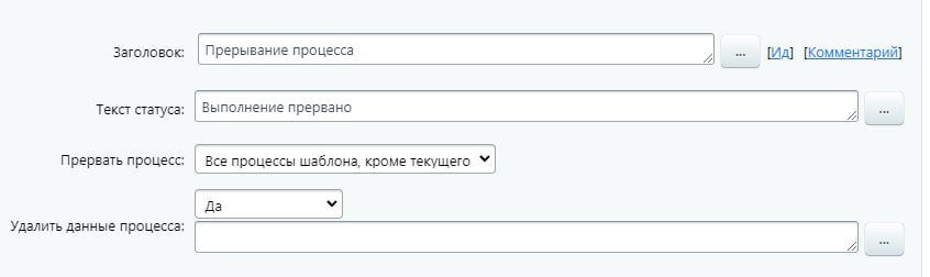 запускают БП "Смена ответственного", он запрашивает нового ответственного, меняет его, далее он гасит БП со стадии и ставит эти все задачи по новой. Но если я загашу БП со стадии через "Прервать всё", то задачи же дальше не поставятся