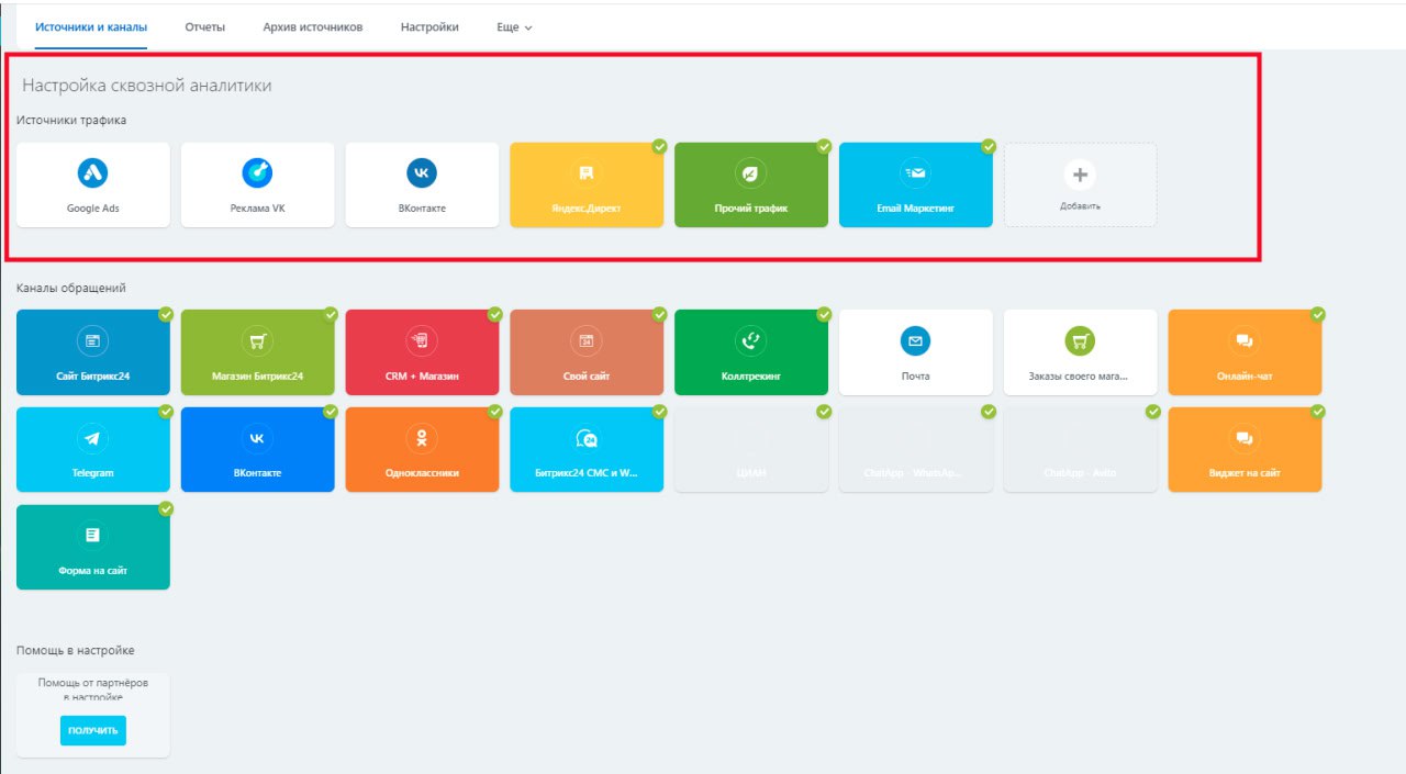 Ребят всем привет. У меня в разделе сквозной аналитики только яндекс.директ горит активным, он и отображается в отчетах. А остальные источники не настроены получается?