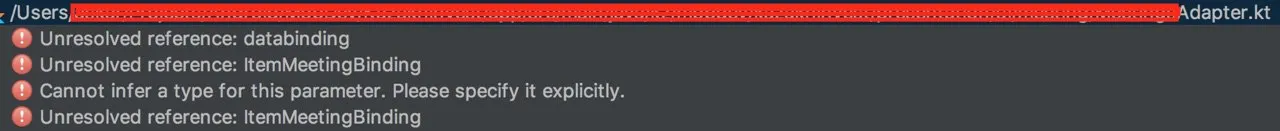 классы типа ItemMeetingBinding генерируются, но всё равно выходит ошибка с картинки выше.