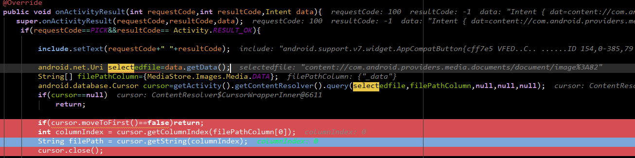 я выбираю файла всеравно мне вернется null