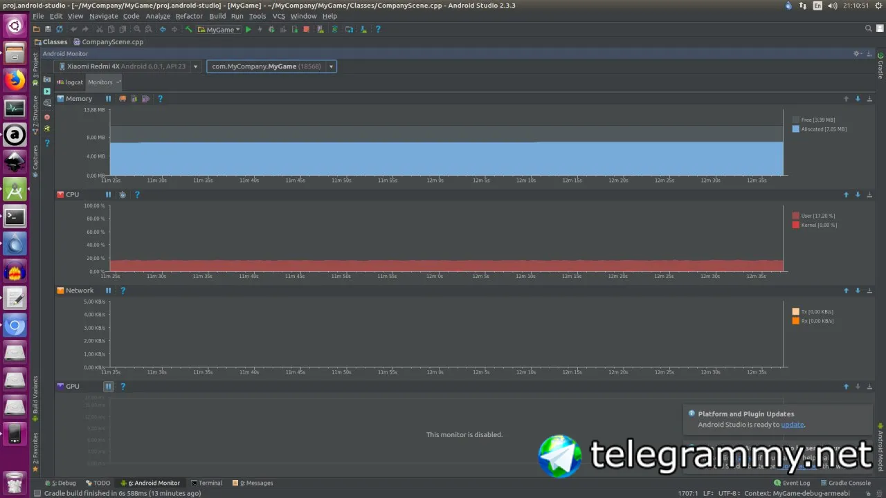 Всем привет! Столкнулся с тормозами во время запуска своего приложения на реальном устройстве. Профайлер найти не удалось, поэтому использовал Андройд монитор. На скрину снизу можно увидеть что проблем с процессором нет - загруженность всего 17%. Да и памяти рассходуется не так уж много. Но есть непонятный момент. В моём устройстве 2ГБ оперативки, а в Андройд-мониторе у меня задействовано 7.05, а свободно 3.39. То есть, выходит мой андройд-смартфон позволяет использовать для приложения примерно 10.5мб памяти? Просветите меня пожалуйста.