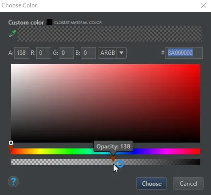 Еще такой вопрос, если задавать цвет в студии через палитру то она показывает прозрачность через альфа канал