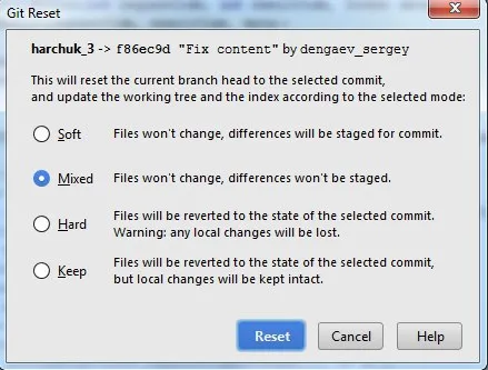 ПКМ по коммиту перед ним, там будет Reset current branch to here