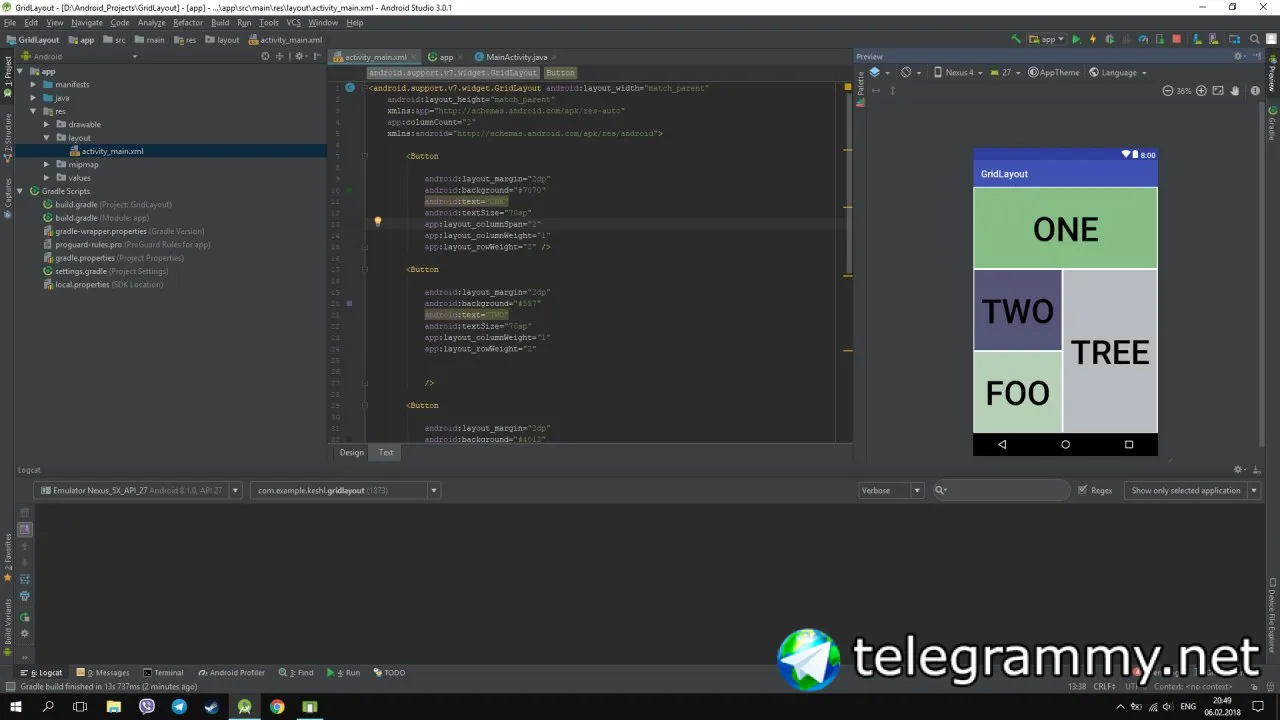 Есть GridLayout на фото, но если беру его в SkrollView то он уменьшаеться на половину.С этим можно чтото сделать?Либо только подбирать и указывать высоту кнопок ?